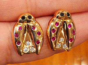 18k Rose Gold Ladybug Earrings with Diamonds and Rubies  - Regular price