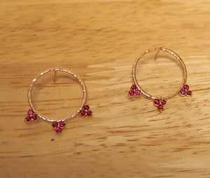 Front Facing Hammered Hoop Earrings 18k Rose Gold with Rubies  - Regular price